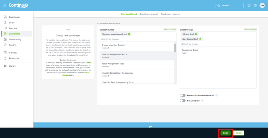 - Select one or more groups to enroll in a course.